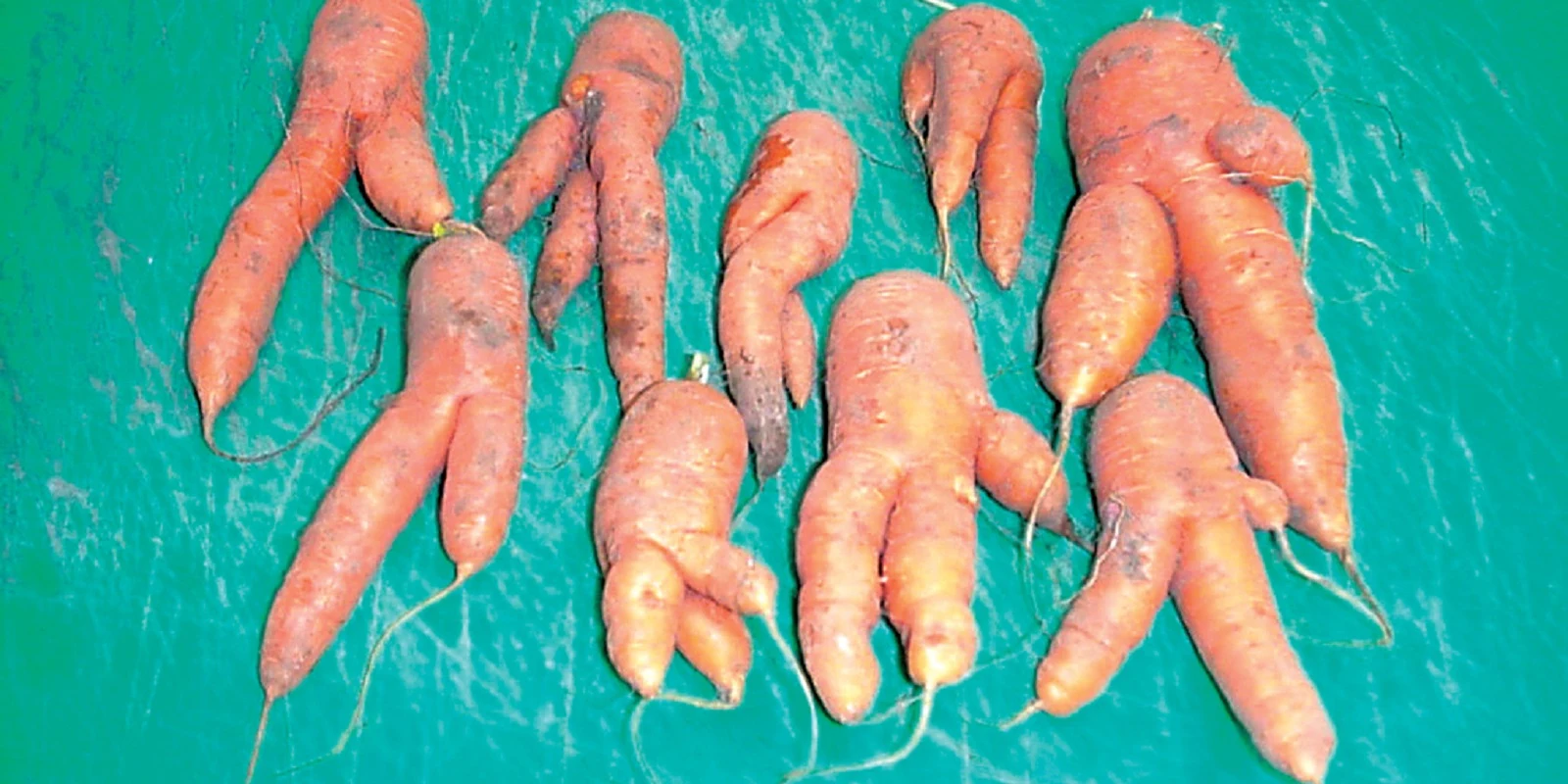 Carrot fanging caused by nematodes.
