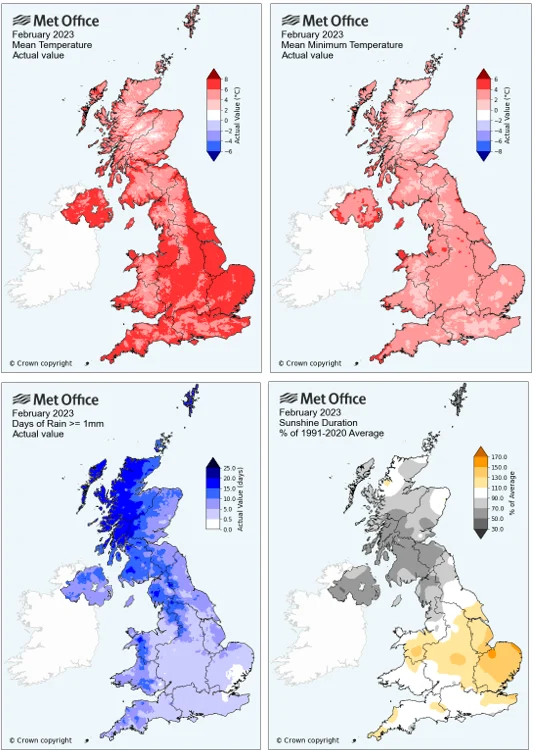 The field experience of February 2023 being a good one for mesosulfuron post-ems is confirmed by The Met Office Monthly Weather Report. You can read the report in full using the link but some of the most salient points are included below. Data for England is presented as this corresponds to most of the arable area likely to receive a February post-em.