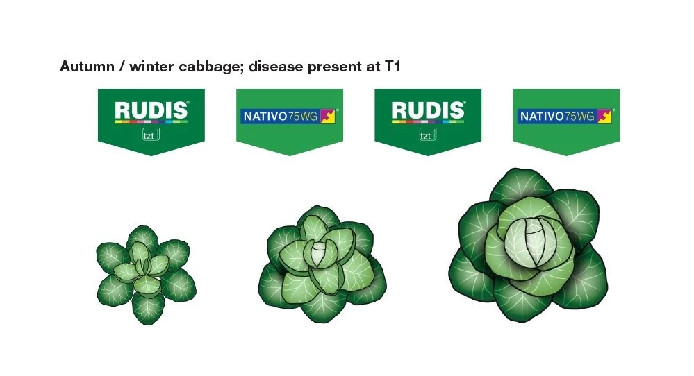 If the crop has disease present when the programme begins, apply Rudis first (T1) for its curative activity and greening effect, then follow with Nativo 75WG and alternate the two.