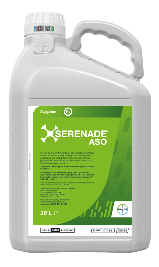 Serenade ASO is a foliar fungicide for the reduction of damage caused by various fungal diseases in a wide range of agricultural and horticultural crops.