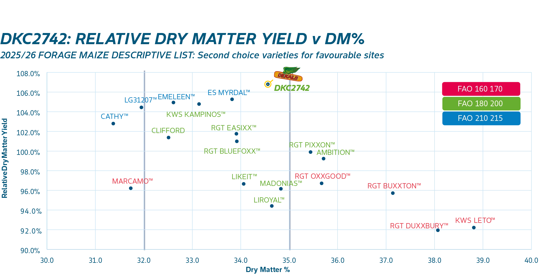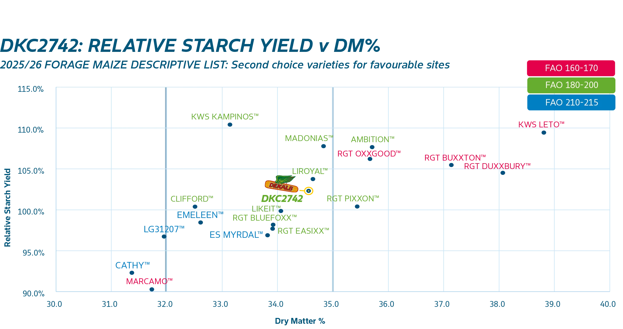 Flint to flint-dent grain for the best combination of fermentable energy and agronomics making DKC2742 suitable for biogas production.